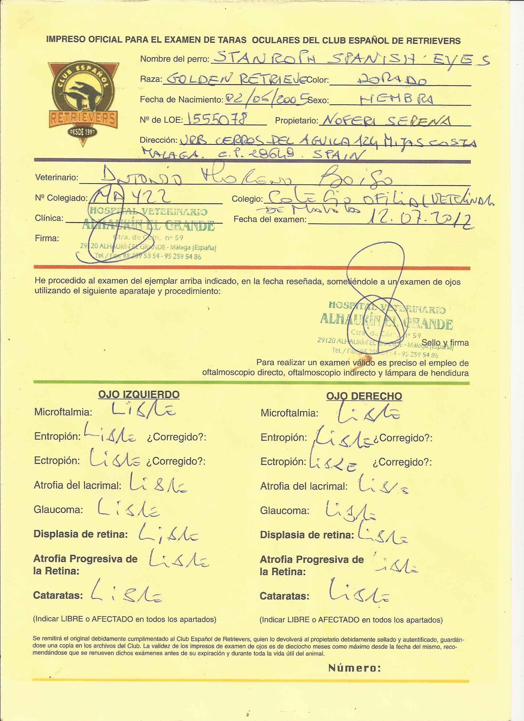 ANNIE EYES CERIFICATE 2013